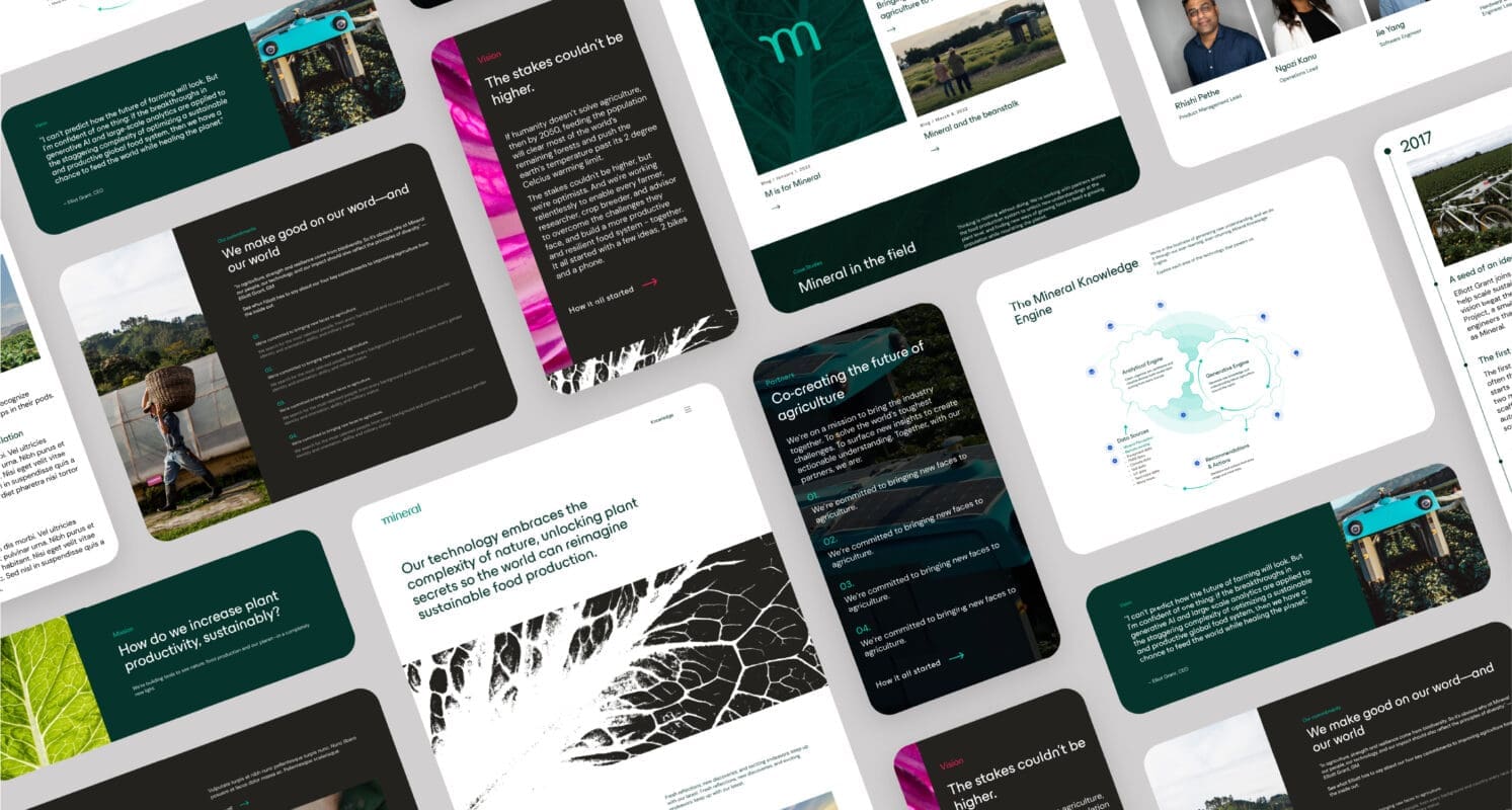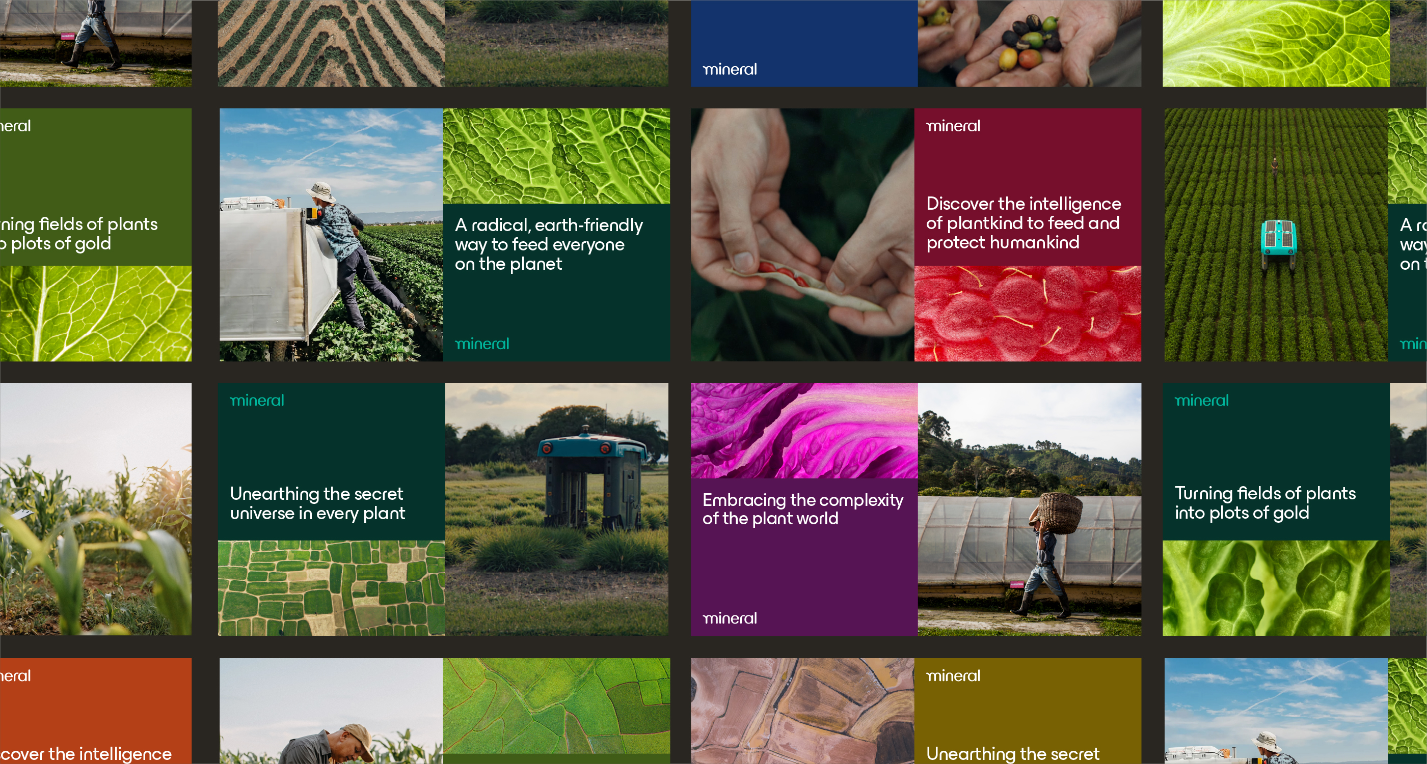 Together, we crafted a business and brand identity that embraces the complexity of our agriculture ecosystems and showcases how Mineral’s breakthrough technology can create a more sustainable and productive food production system for our future.