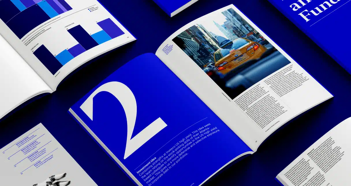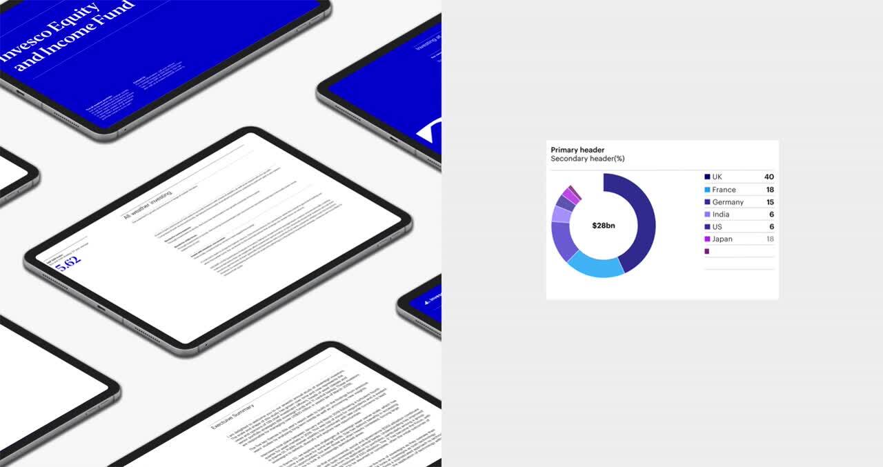Visual assets are not enough on their own. How they’re arranged is just as important as the assets themselves. We designed an underlying grid system that enables Invesco to consistently present information across all communications, ensuring everything is in its right place and delivering a cohesive brand experience .
