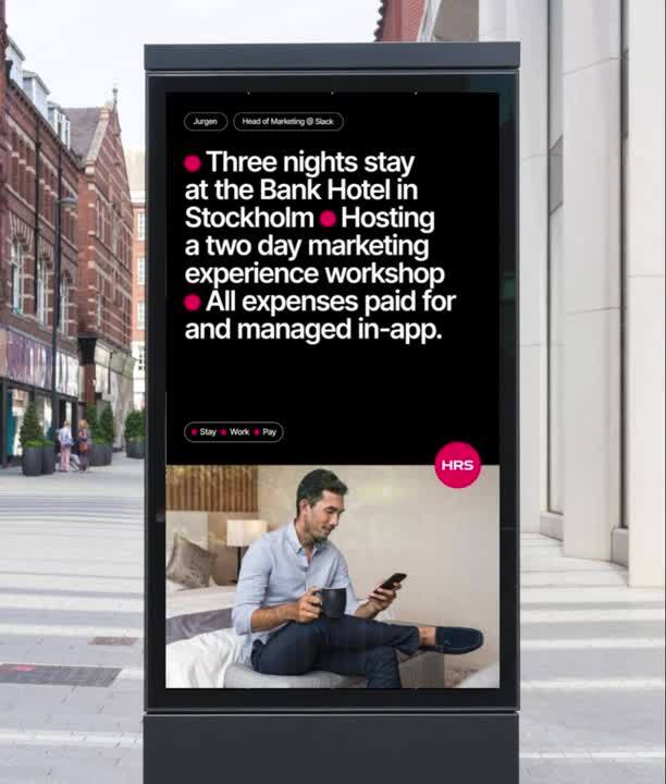 The new brand identity reflects the ease of use and bold positioning, highlighting HRS’s energy, simplicity and tech focus. The visual identity matches HRS’ new confidence, breaking through the crowded B2B travel industry. We also developed an updated Employee Value Proposition, to communicate the HRS story to employees and potential hires.