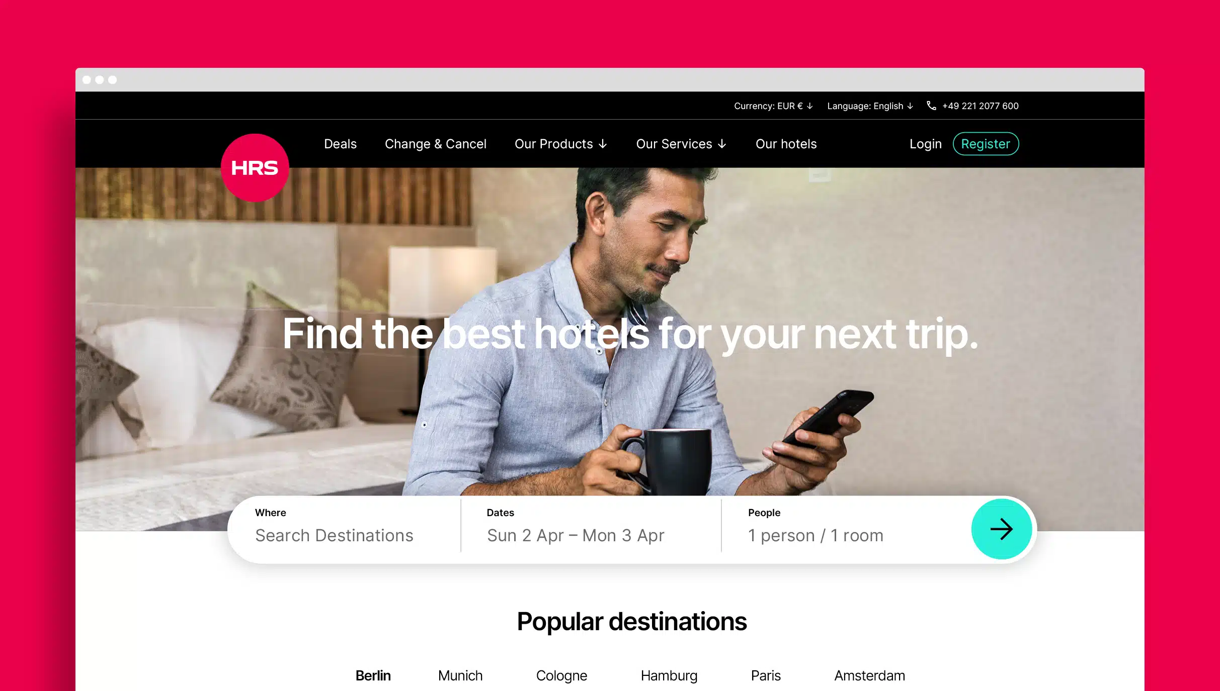 HRS’s roots stem from consumer travel. As a leading hotel portal in Germany and one of the top three in Europe, the iconic “Red Bed” has been synonymous for many years with great hotel deals. Aside from this, HRS built its name by catering to the evolving needs of the business-to-business (B2B) enterprise travel market, including being an early mover to offer travel management services for companies relocating their employees around the world. This enabled new revenue streams beyond sourcing hotel deals, including securing meeting spaces and supporting payment processes. HRS’s approach has always been to actively embrace technology, ensuring customers can conveniently access and manage their travel needs, from accommodation to meetings, through one seamless platform.