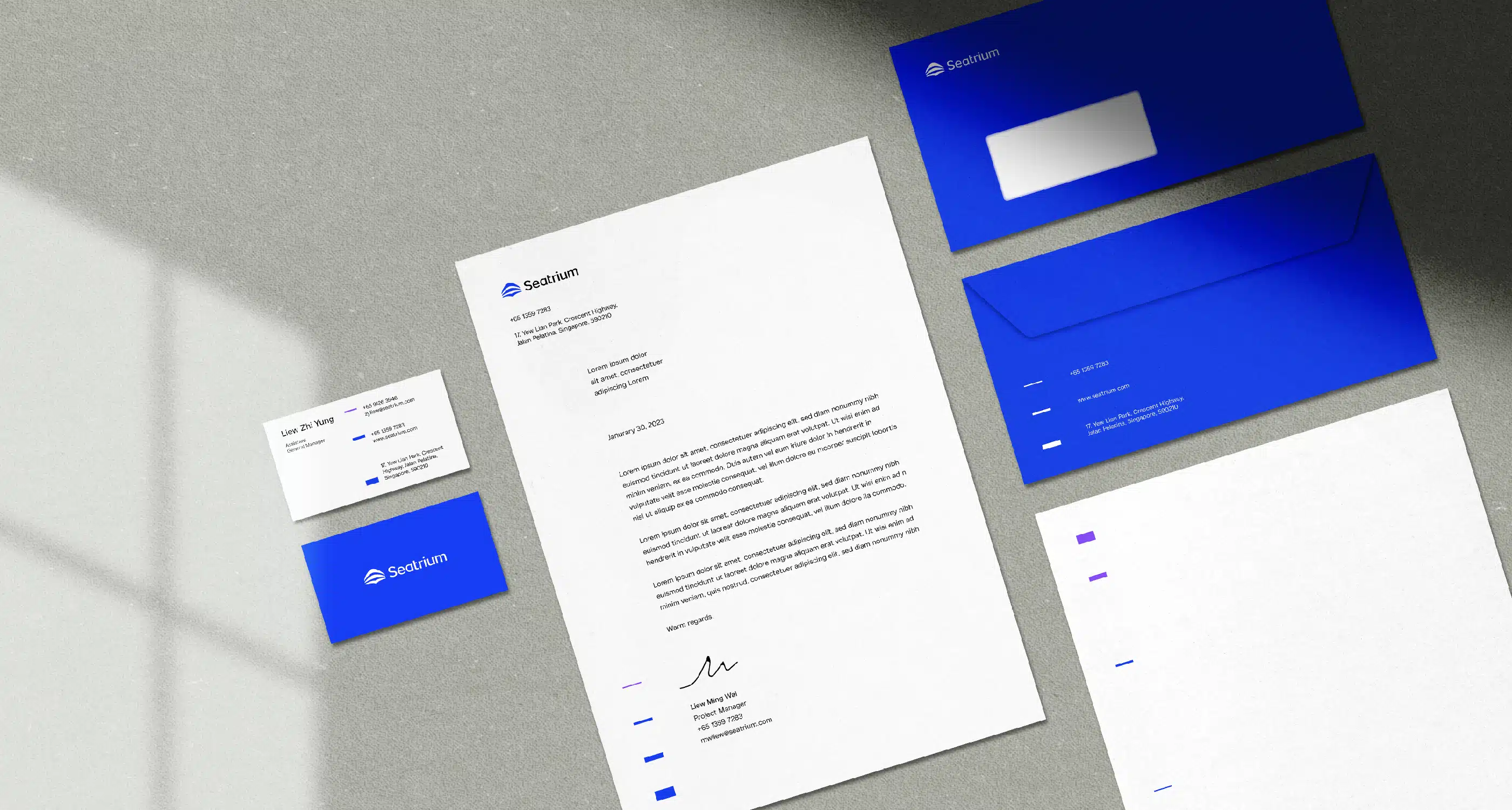 Inspired by forms in the industry, the new visual identity highlights new waves of innovation in the marine environment and elevates Seatrium to new heights. Inspired by the shape of Singapore and the bow of a ship, Seatrium showed their commitment to expand their footprint to reach new customers and markets. The three crescent shapes form their foundation; anchored in offshore marine, defining new horizons and ensuring clean skies for all, together helping to elevate above and below. The symbol reflects the key principles – flexible, fearless and resilient. Moreover, the new color palette is refreshing, minimal and outstanding. A brand book was also created to familiarize employees with their new brand strategy and visual look and feel to ensure they communicate in a cohesive way that is uniquely Seatrium.