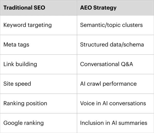 AEO doesn’t replace SEO—it builds on it. But it requires a shift in mindset: from optimizing for clicks to optimizing for answers.
