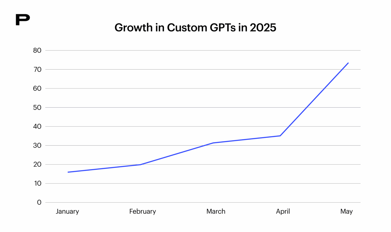 Our focus on AI solutions isn’t a one-off initiative. It’s a cultural shift—and we’re seeing it in the data. The number of custom GPTs built internally has grown exponentially.