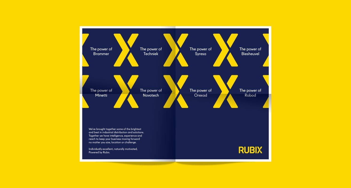 Das Team entwickelte in kürzester Zeit eine Markenstrategie, die die Wachstumsabsichten des Industriegiganten gezielt unterstützen würde. Die im ersten Schritt definierte Markenpositionierung machte die Suche eines neues Namens unumgänglich. Dieser sollte den auf den Menschen fokussierten Problemlösungsansatz des Unternehmens würdigen und ihn gleichzeitig mit Kreativität und Einfallsreichtum in Verbindung bringen. So wurde eine neue Marke geboren: Rubix.